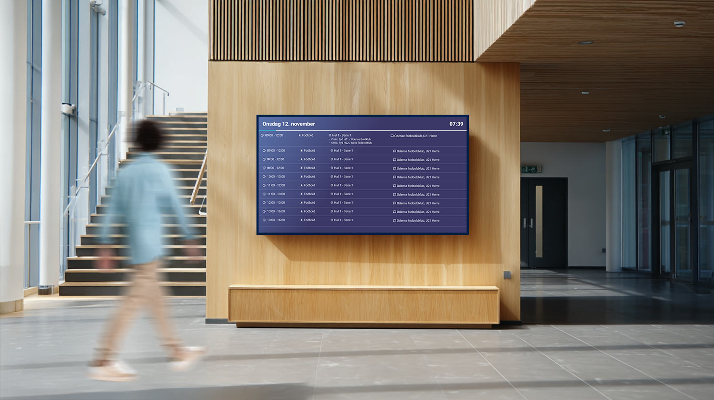 Dette modul er jeres digitale opslagstavle. Det giver de besøgende et let og enkelt overblik over, hvilke klubber og foreninger der benytter hallen.